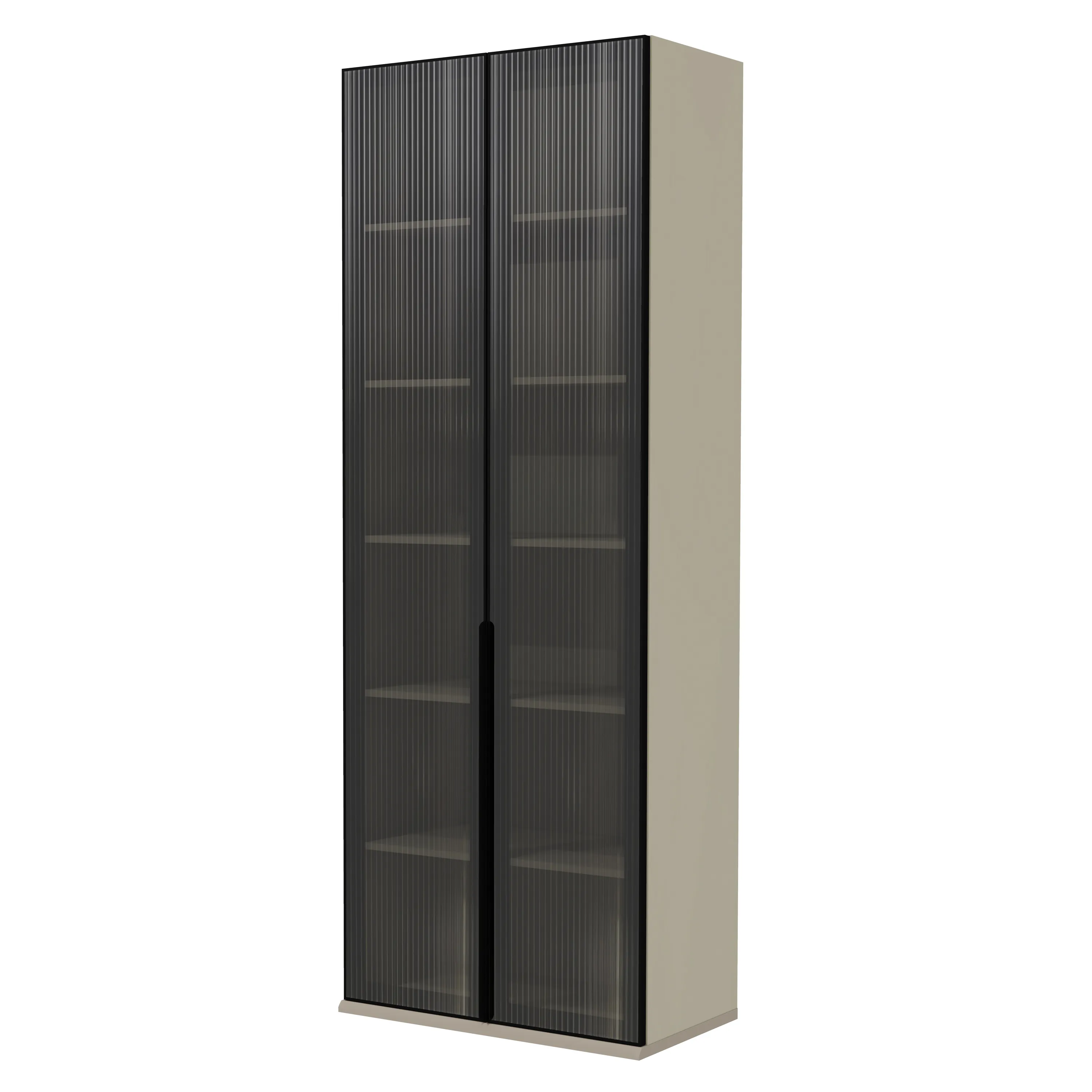 - Стеклянные двери выполнены из рифлёного тонированного стекла толщиной 4 мм в черной алюминиевой раме.
