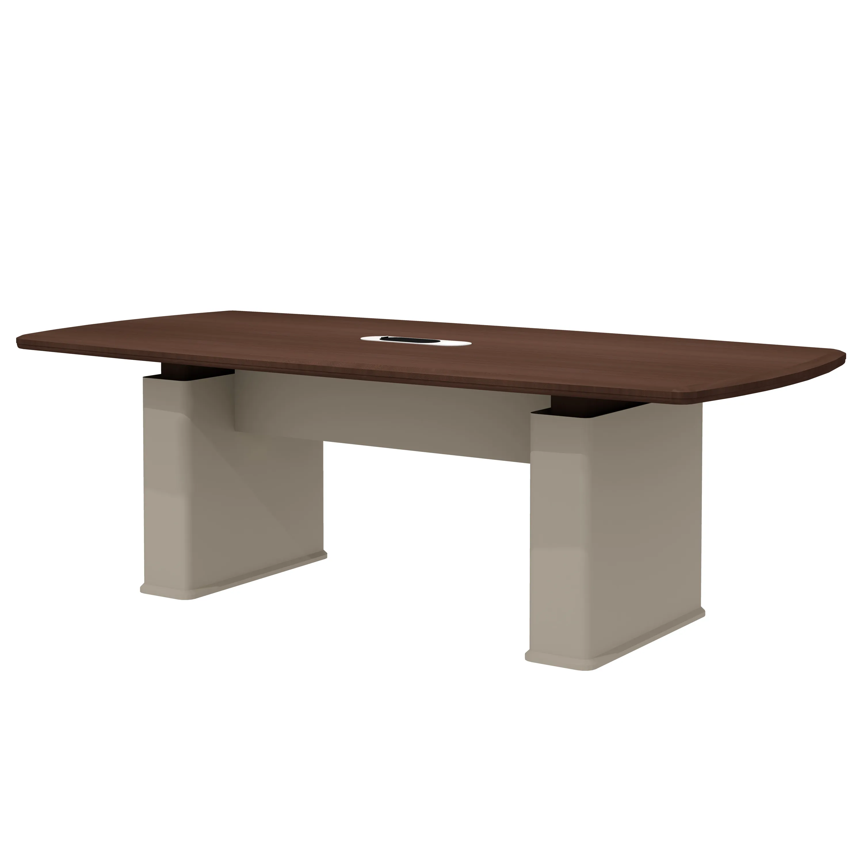 - Опоры брифинг-приставки и стола для переговоров выполнены в форме объемных коробов с проставками и барьером, торцы которого обработаны по аналогии с корпусами опорных тумб рабочих столов.