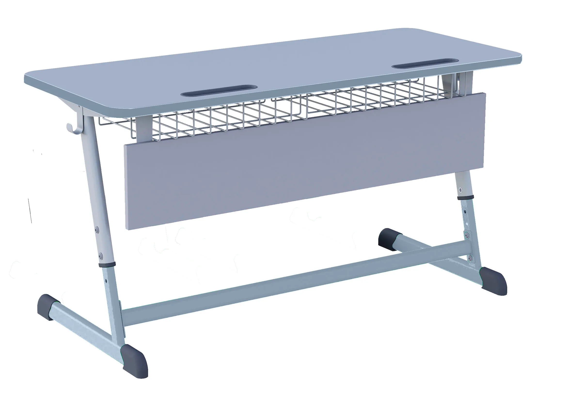 Парта SMARTY двухместная регулируемая по высоте. Основание металлическое, столешница ЛДСП, толщина 22 мм. Размер столешницы 1200*500мм. Кромка ПВХ толщиной 2мм в цвет ЛДСП или антивандальная полиуретановая. В столешницу встроен пластиковый пенал 2 шт. Наличие крючков для подвешивания рюкзаков 2шт. Наличие сетки для школьных принадлежностей. Металлокаркас из плоскоовальной трубы сборно-разборный.