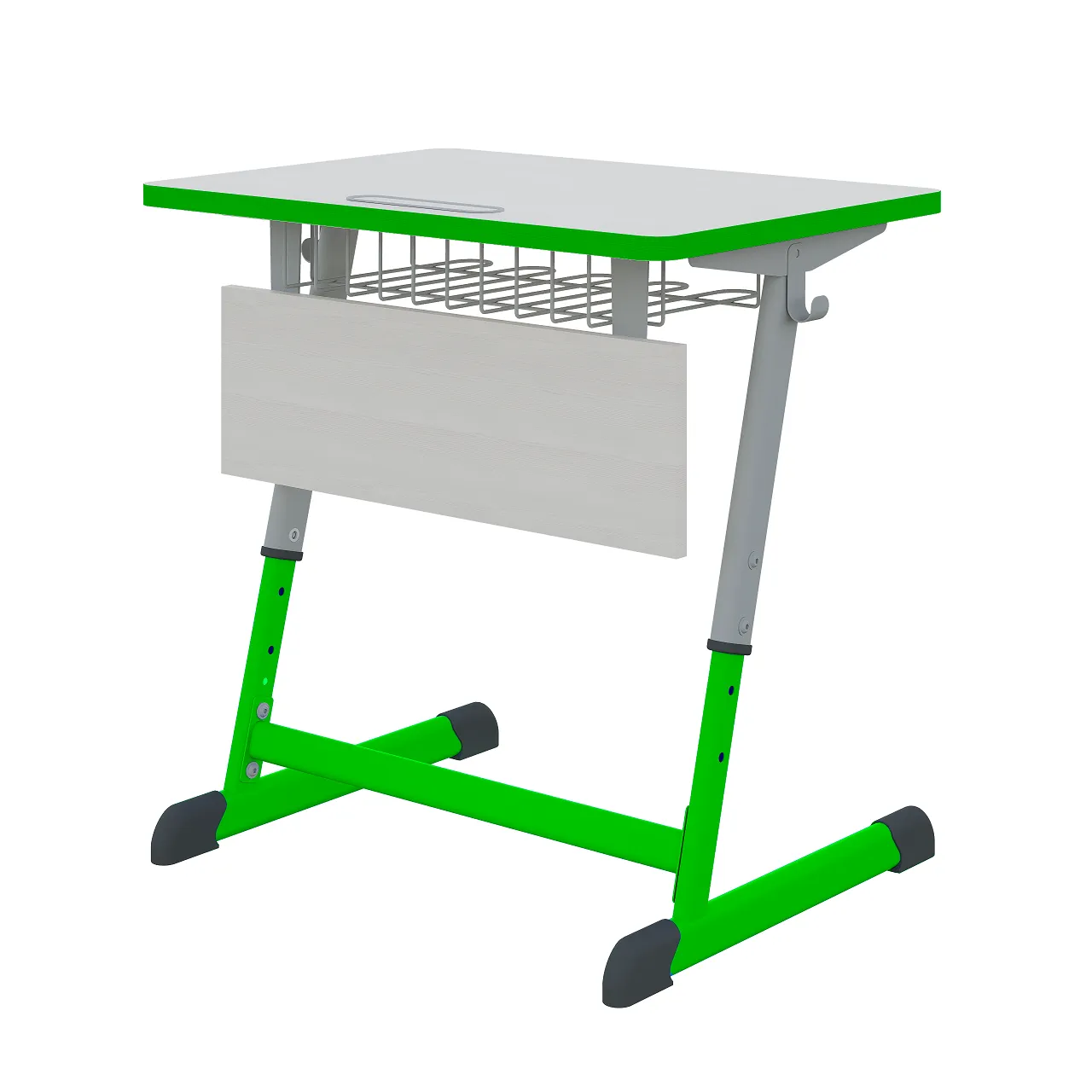 Парта SMARTY одноместная регулируемая по высоте. Основание металлическое, столешница ЛДСП, толщина 22 мм. Размер столешницы 600*500мм. Кромка ПВХ толщиной 2мм в цвет ЛДСП или антивандальная полиуретановая. В столешницу встроен пластиковый пенал. Наличие сетки для школьных принадлежностей. Наличие крючка для рюкзака. Металлокаркас из плоскоовальной трубы. Каркас стола сборно-разборный.